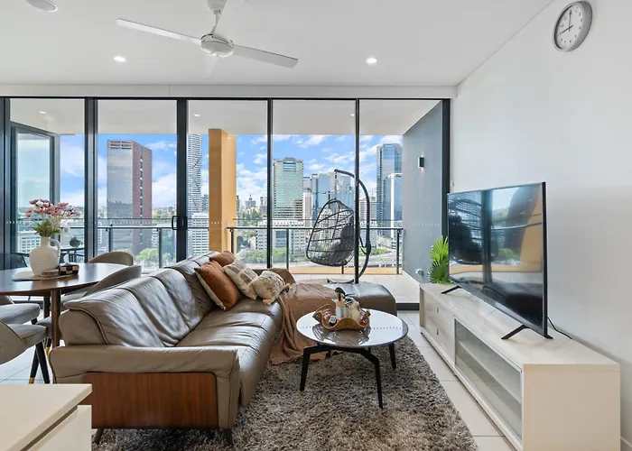 Doté d'une piscine et d'une terrasse, les appartements The Grand Panorama Riverside Escape With 3Bd Brisbane est situé dans le quartier "Sud-Brisbane" à 950 m du Monument aux morts de la place ANZAC. Bénéficiant d'un emplacement près de Brisbane Magistrates Court, la résidence spacieuse offre à ses clients un jacuzzi et un sauna.